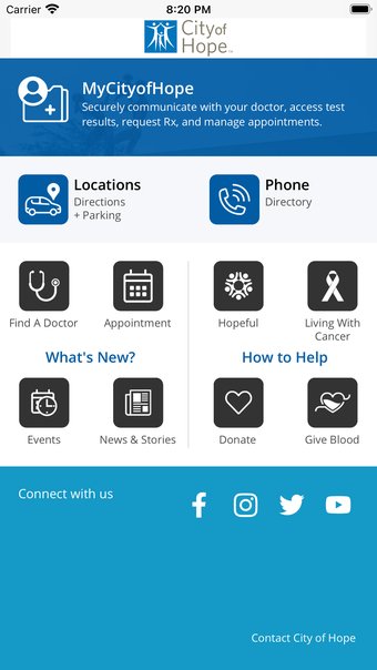 La aplicación City of Hope es una herramienta diseñada para facilitar el acceso a la información médica de los usuarios. Permite gestionar los registros médicos, localizar centros de tratamiento y conocer opciones de aparcamiento. Además, ofrece recursos para mejorar la experiencia de los pacientes en City of Hope. Su interfaz intuitiva ayuda a los usuarios a navegar fácilmente por las distintas funcionalidades.